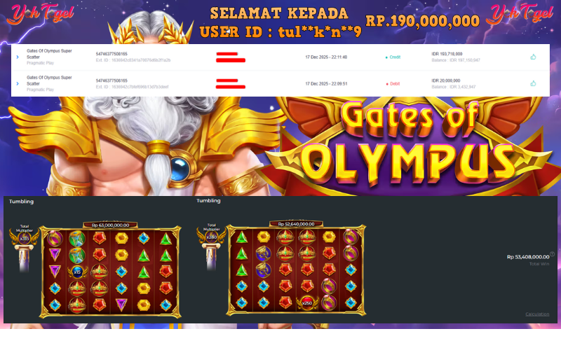 BUKTI BAYAR JACKPOT KEMENANGAN DI Gates Of Olympus Super Scatter (Pragmatic Play)