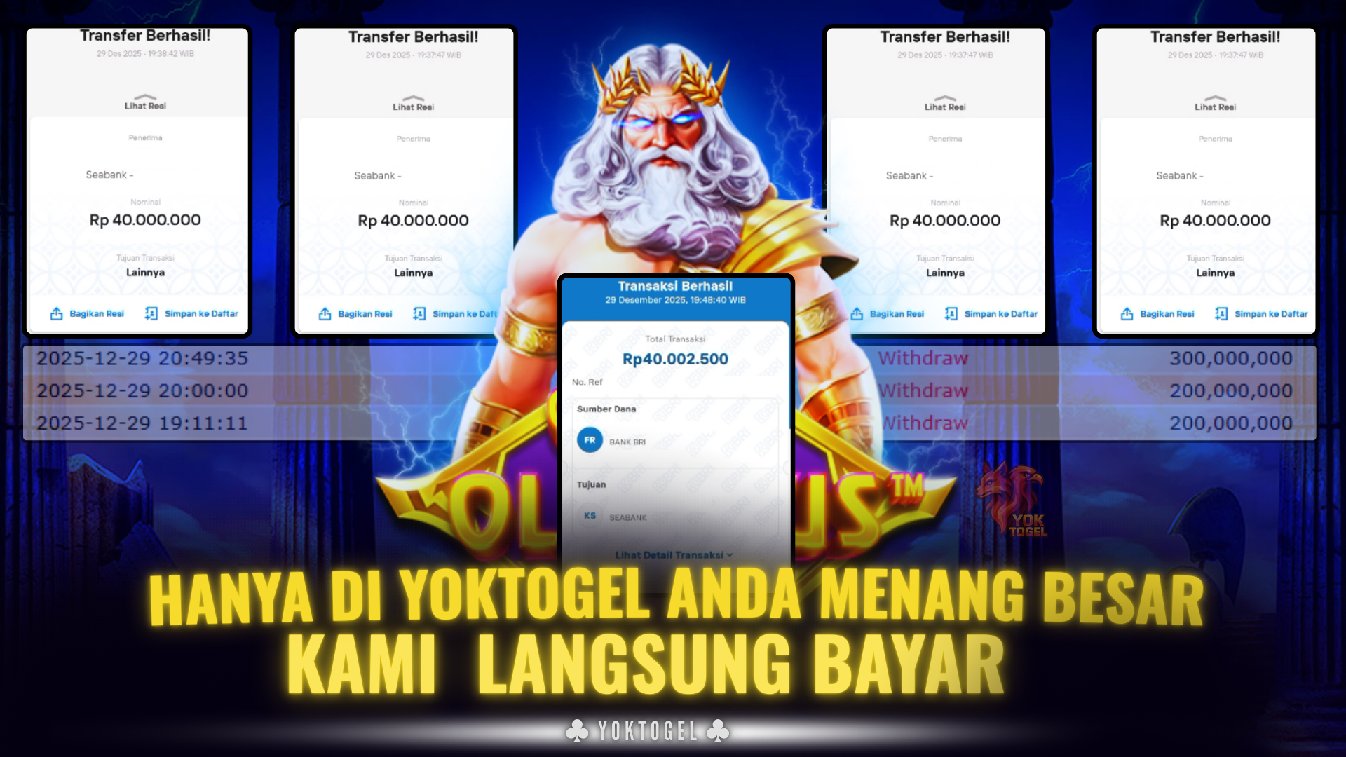 Masih ragu kemenangan anda tidak di bayarkan? segera bergabung bersama kami YokTogel. kami memberikan bukti bukan hanya sekedar janji! dengan hanya Minimal deposit Rp.10.000 anda dapat jackpot hingga ratusan juta rupiah! Kenapa harus di YokTogel? Karena Yoktogel sudah terpercaya di Asia Tenggara yang menawarkan berbagai puluhan pasaran Togel, SLOT dan Live Games yang bisa dimainkan. Hanya dengan modal Rp.10.000 saja, Anda sudah bisa bergabung dan bermain di situs YokTogel dan sudah bisa memenangkan hadiah hingga ratusan juta Rupiah. Tidak percaya ? silahkan di cek bukti hadiah kemenangan member YokTogel yang sudah dibayarkan kepada pemenang. Dan melakukan penarikan sebesar Rp. 200,000,000 ,- yang telah di transfer LUNAS,- YOKTOGEL sudah terkenal dimana-mana dan memiliki Jutaan member aktif serta memiliki prinsip fairplay. Berapapun kemenangan Anda akan kami bayarkan. Berikut bukti yang sudah kami transferkan kepada pemenang