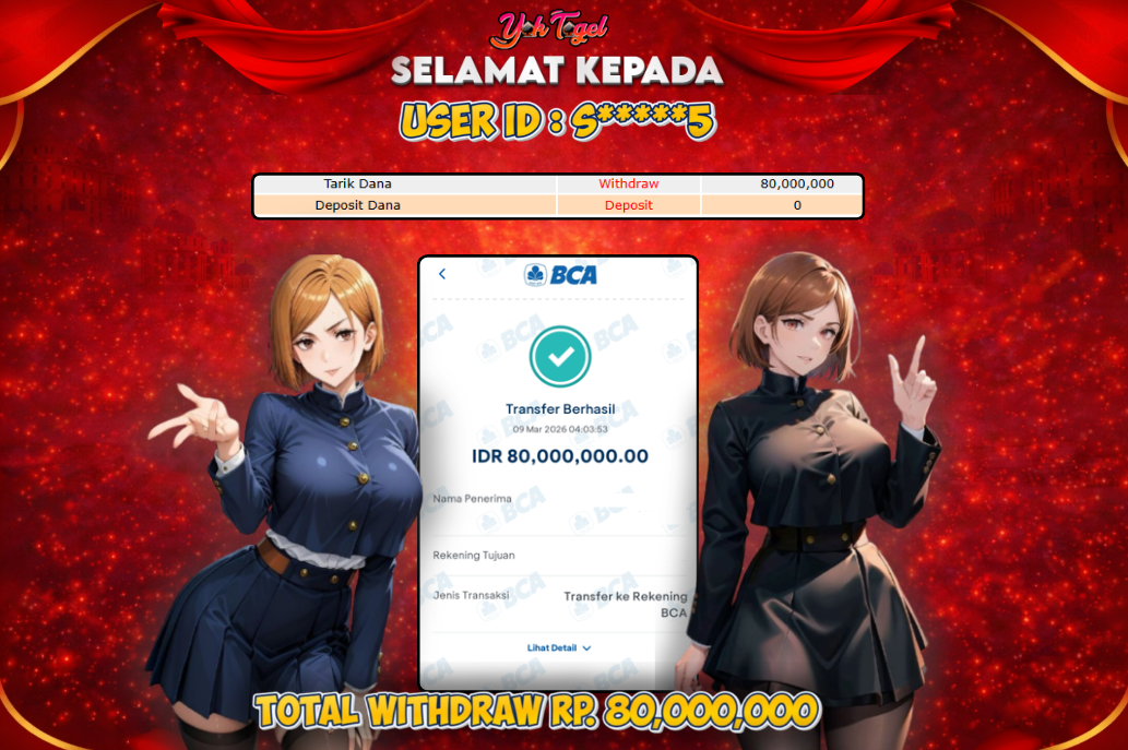 Masih ragu kemenangan anda tidak di bayarkan? segera bergabung bersama kami YokTogel. kami memberikan bukti bukan hanya sekedar janji! dengan hanya Minimal deposit Rp.10.000 anda dapat jackpot hingga ratusan juta rupiah! Kenapa harus di YokTogel? Karena Yoktogel sudah terpercaya di Asia Tenggara yang menawarkan berbagai puluhan pasaran Togel, SLOT dan Live Games yang bisa dimainkan. Tidak percaya ? silahkan di cek bukti hadiah kemenangan member YokTogel yang sudah dibayarkan kepada pemenang. Dan melakukan penarikan sebesar Rp. 80,000,000 ,- yang telah di transfer LUNAS,- YOKTOGEL sudah terkenal dimana-mana dan memiliki Jutaan member aktif serta memiliki prinsip fairplay. Berapapun kemenangan Anda akan kami bayarkan. Berikut bukti yang sudah kami transferkan kepada pemenang